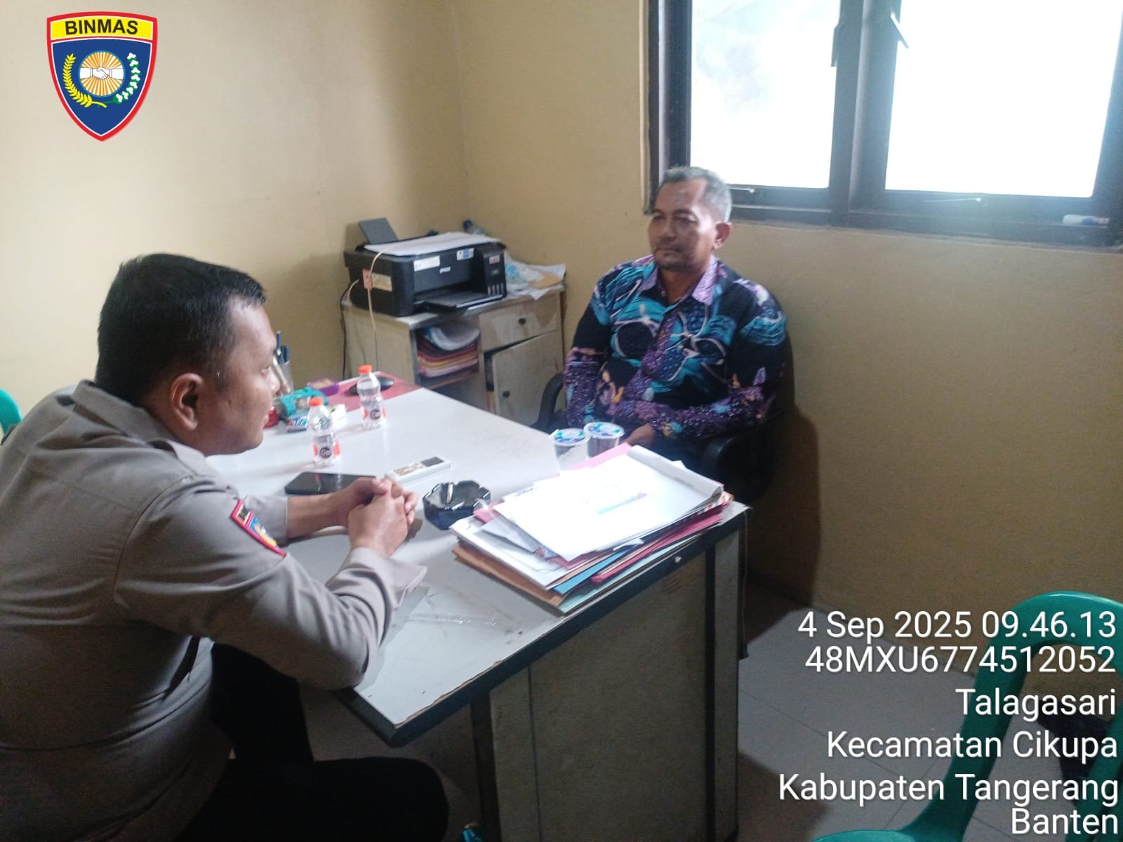 Tangerang, Kabar Wong Bodho (KWB) – Kamis (04/09/2025). Polsek Cikupa memperkuat komitmennya untuk mempertahankan keamanan dan ketertiban dengan menjalin komunikasi eksklusif bersama masyarakat. Melalui aktivitas “sambang” yang dipimpin oleh Kanit Binmas Ipda Ricky Tohang dan Bhabinkamtibmas Brigpol Rohmat, Polsek Cikupa mendatangi Pemerintah Desa Talagasari, Kecamatan Cikupa, pada Kamis (4/9/2025).